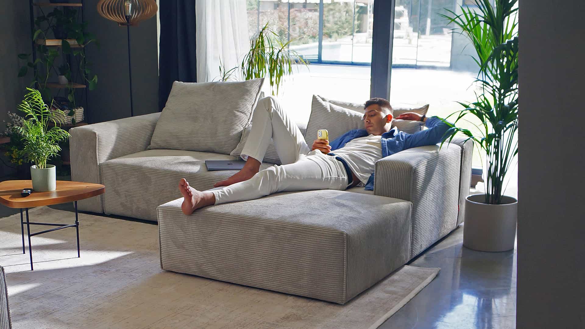 V našem 3D konfigurátoru FEYDOM Designer si můžete sestavit sedací soupravu podle vašich představ. Přidávejte, otáčejte, měňte potahy i barvy. A poté si vše prohlédněte ve 3D.3D konfigurátor